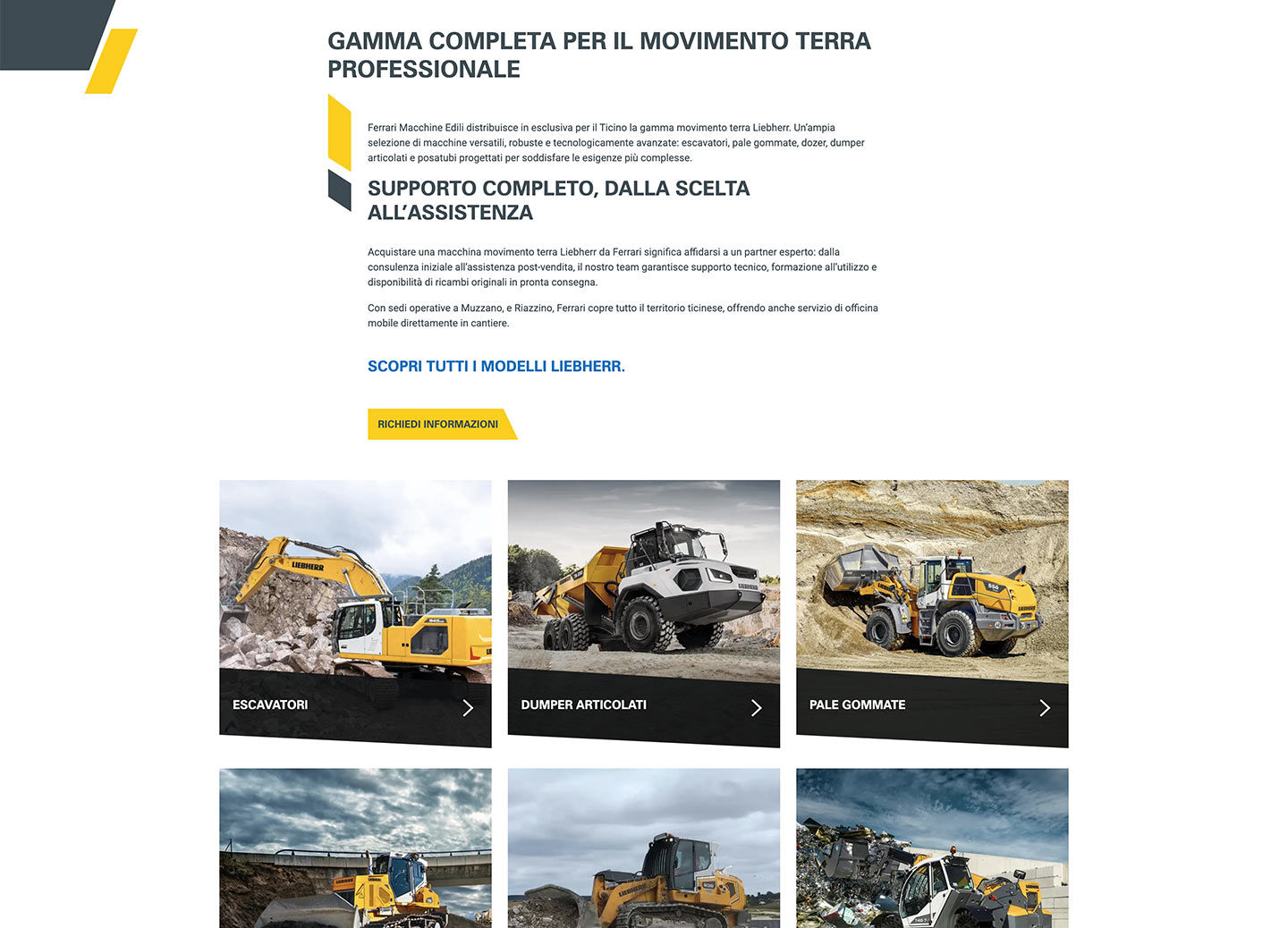 Un’architettura SEO-friendly, che consente al sito di posizionarsi per parole chiave legate alle macchine edili e ai servizi correlati in Ticino.